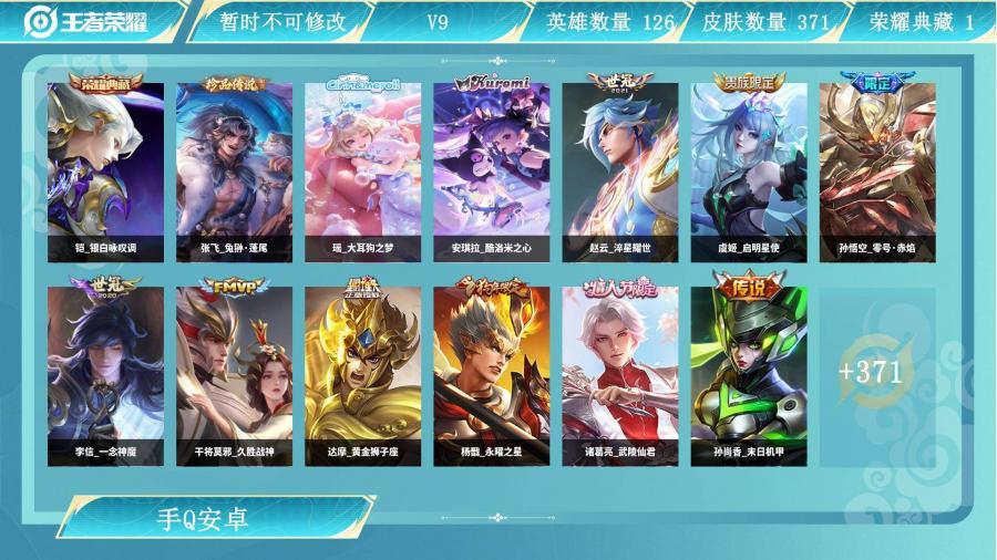V9 1典藏 15传说 112史诗 371皮肤 至圣王者...¥1000.00