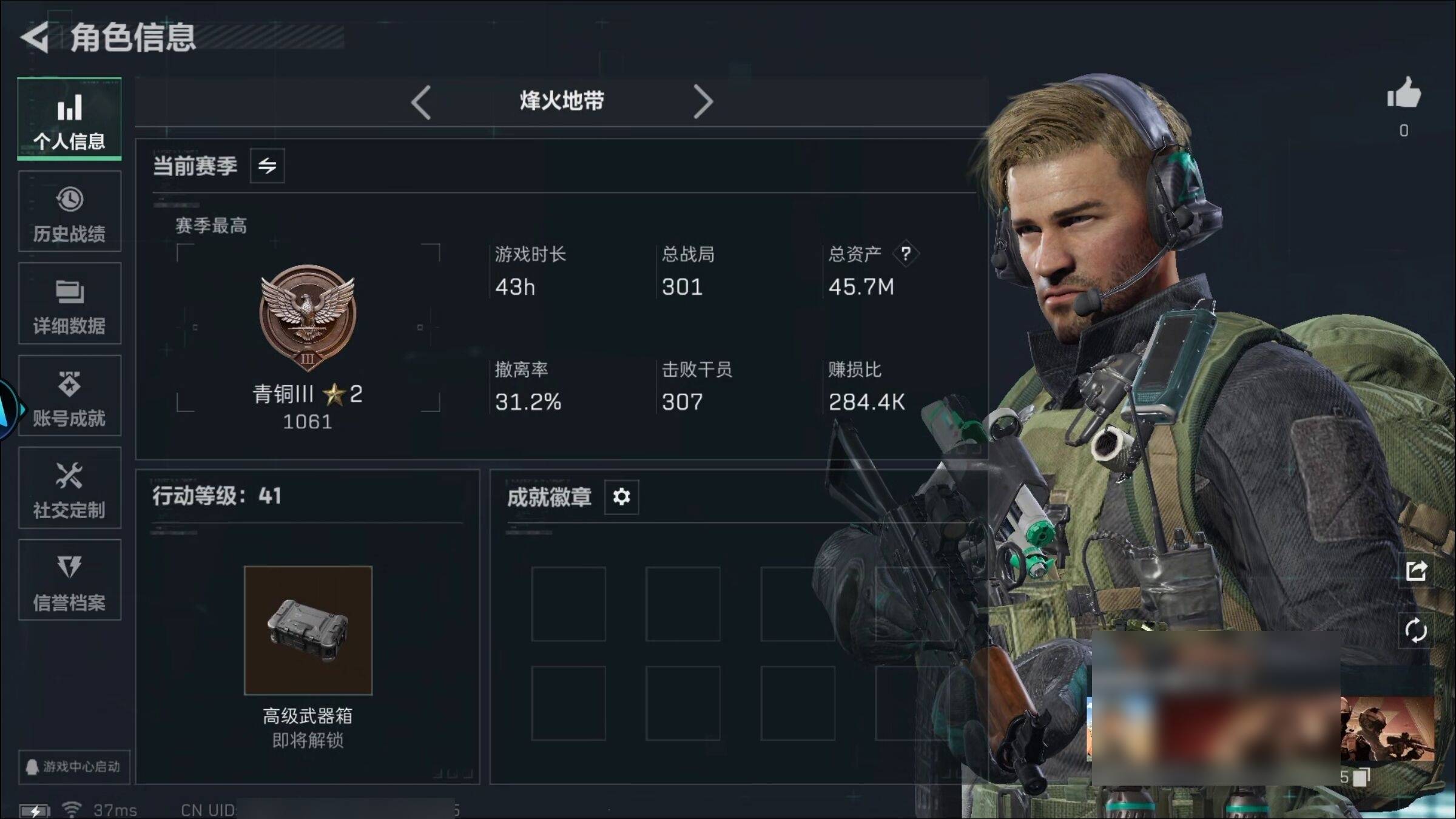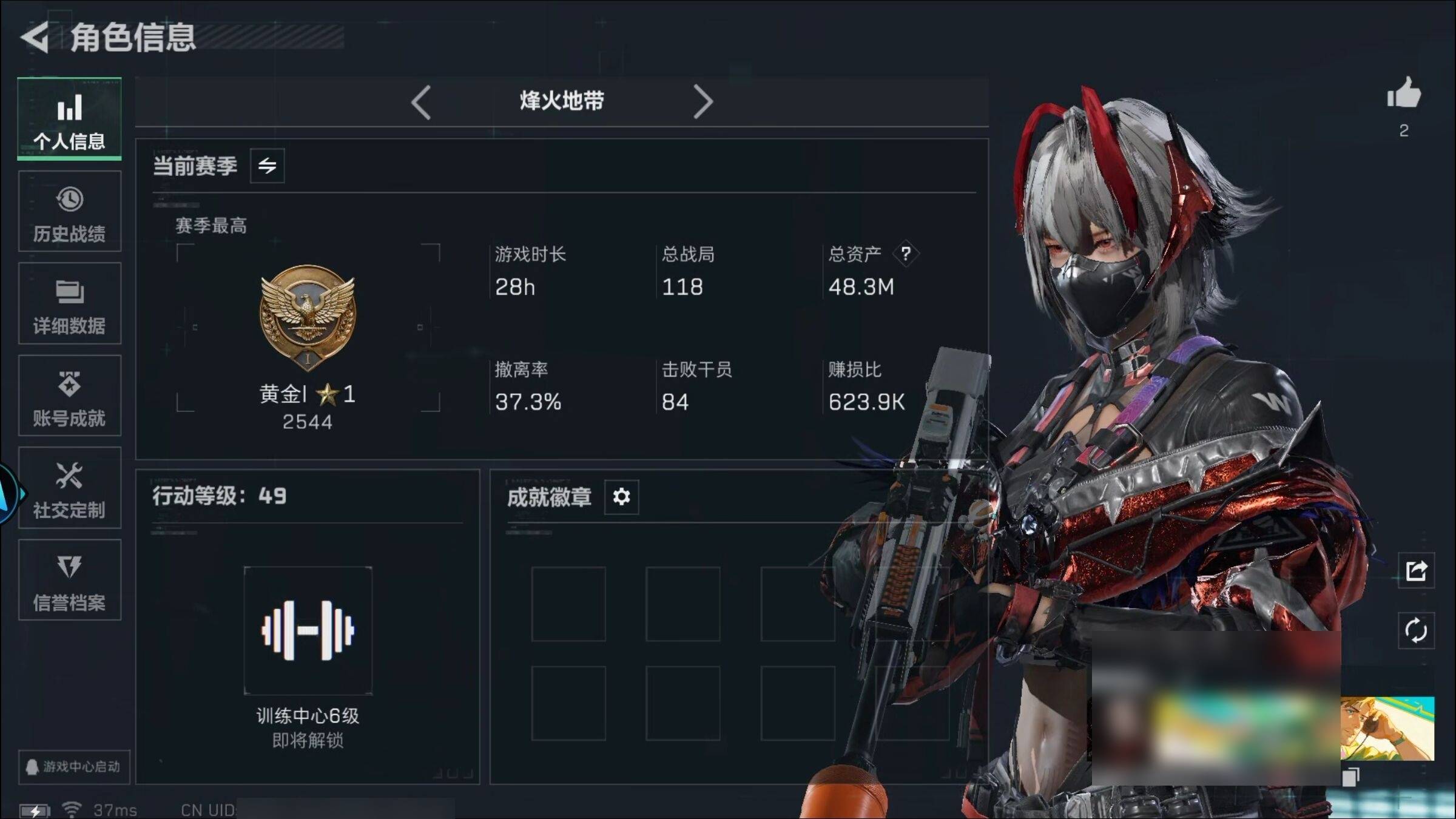 总资产9M 2干员外观 1近战 21传说枪械 烽火:三角洲巅峰 战场:...¥1000.00